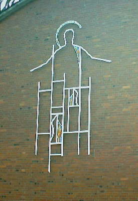 Seitenwand des Neubaus, neben dem Eingang zum Schulgelände