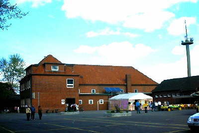 Turnhalle mit Festzelt während der Jubiläums-Ausstellung